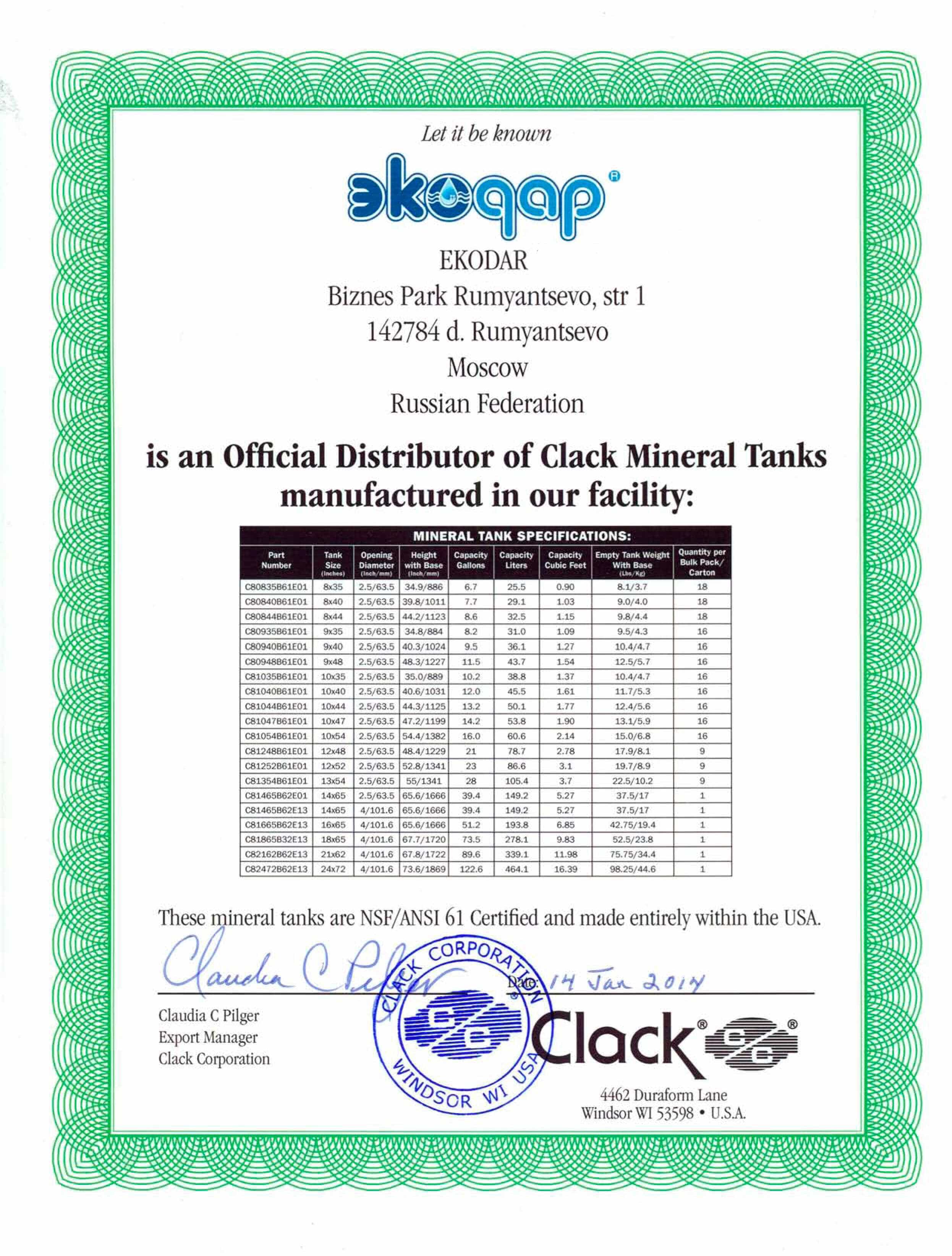 С 1997 года компания Экодар является членом Water Quality Association.